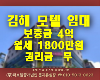 [경남모텔임대] 김해 중심상업지 37객실 호텔 임대, 월 6천대 매출 운영 중인 수익형 매물