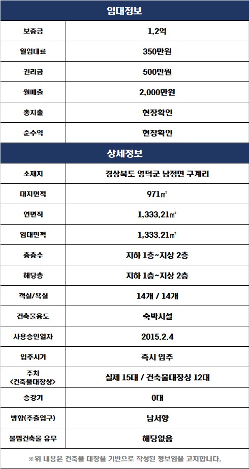 오늘 소개해 드릴 매물은 경상북도 영덕군 남정면, 동해안 최고의 드라이브 코스인 7번 국도변에 위치한 무인텔 임대 물건입니다.